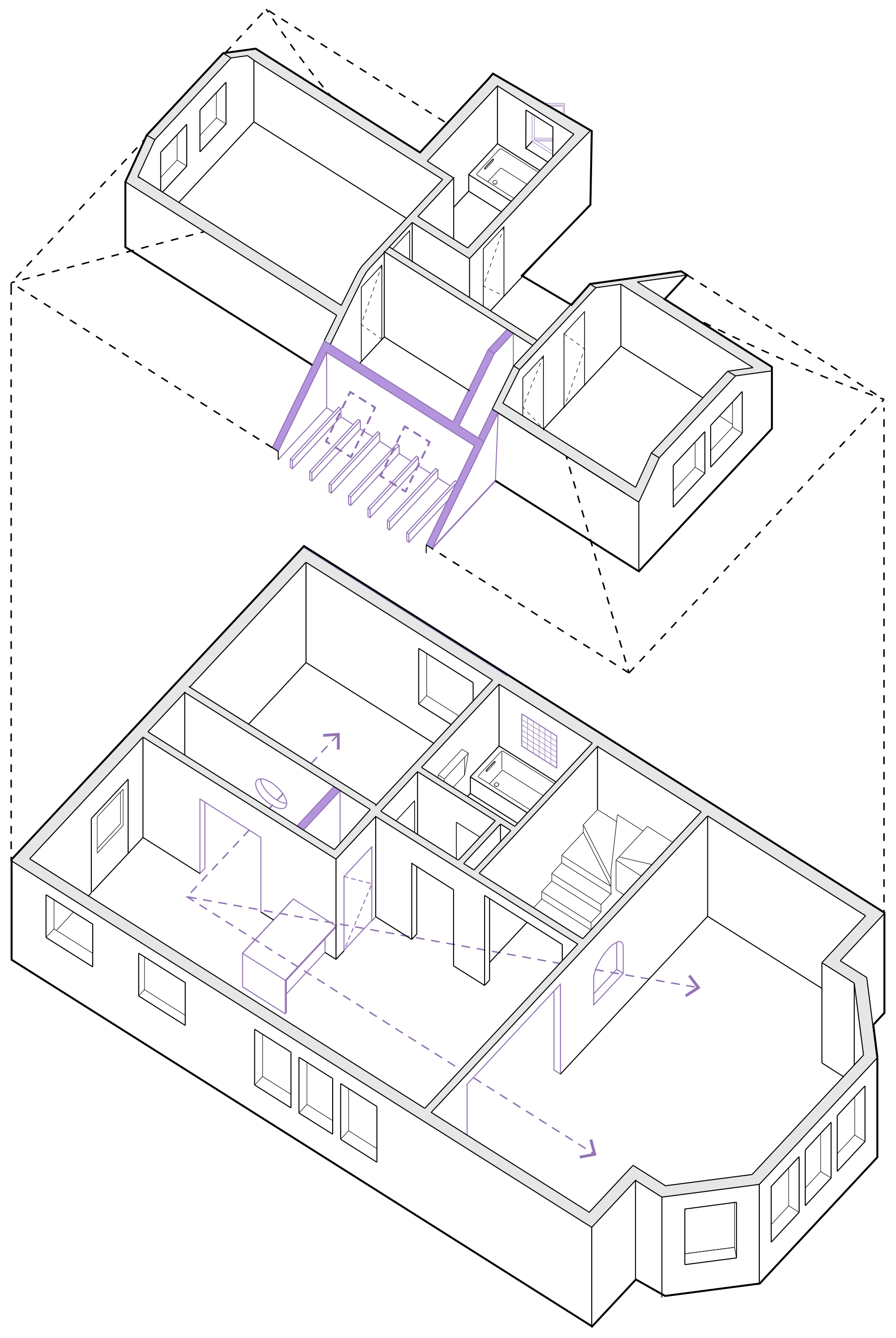 Diagram: New openings create new lines of sight and bring natural light deeper into the home